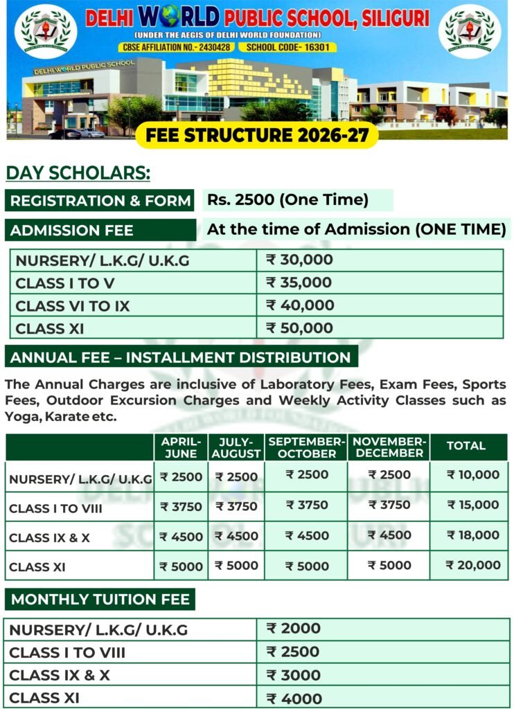 Home Admission Fee Structure Fee Structure Fee Structure Admission Rule School Rules Fee Structure Transportation Fee- ₹ 3,000 (monthly) It will vary as per the distance. Books, Uniform, School bag to be paid separately.